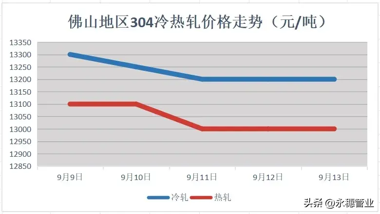 截止周五,304冷轧/热轧主流资源价格均累计下跌100元/吨。目前304冷轧成交价格在13200元/吨毛基,304热轧成交价围绕13000元/吨展开。